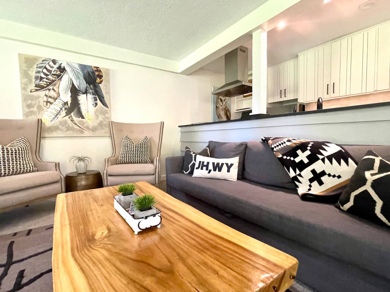Enjoy warmth and comfort with our inviting 1B, 1B Aspens end unit. Impeccably designed with attention to detail, this retreat will become your home away from home. Conveniently located within walking distance, you'll discover a market, yoga studio, coffee shop, and a bus stop, with easy access to world-class skiing. Plush towels and linens await, akin to a deluxe hotel. Enjoy breathtaking views of the majestic Tetons. Experience the ultimate blend of comfort and convenience at our property.