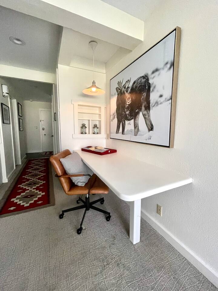 Beautiful, quiet neighborhood with lots of open space, trees, Mountain View’s and frequent moose sightings. There is a specialty grocery store, yoga studio, athletic club, coffee shop, sushi restaurant and country club with golf and cross country skiing all within walking distance. The bus stop is also within walking distance with front door access to the ski resort and Jackson proper.