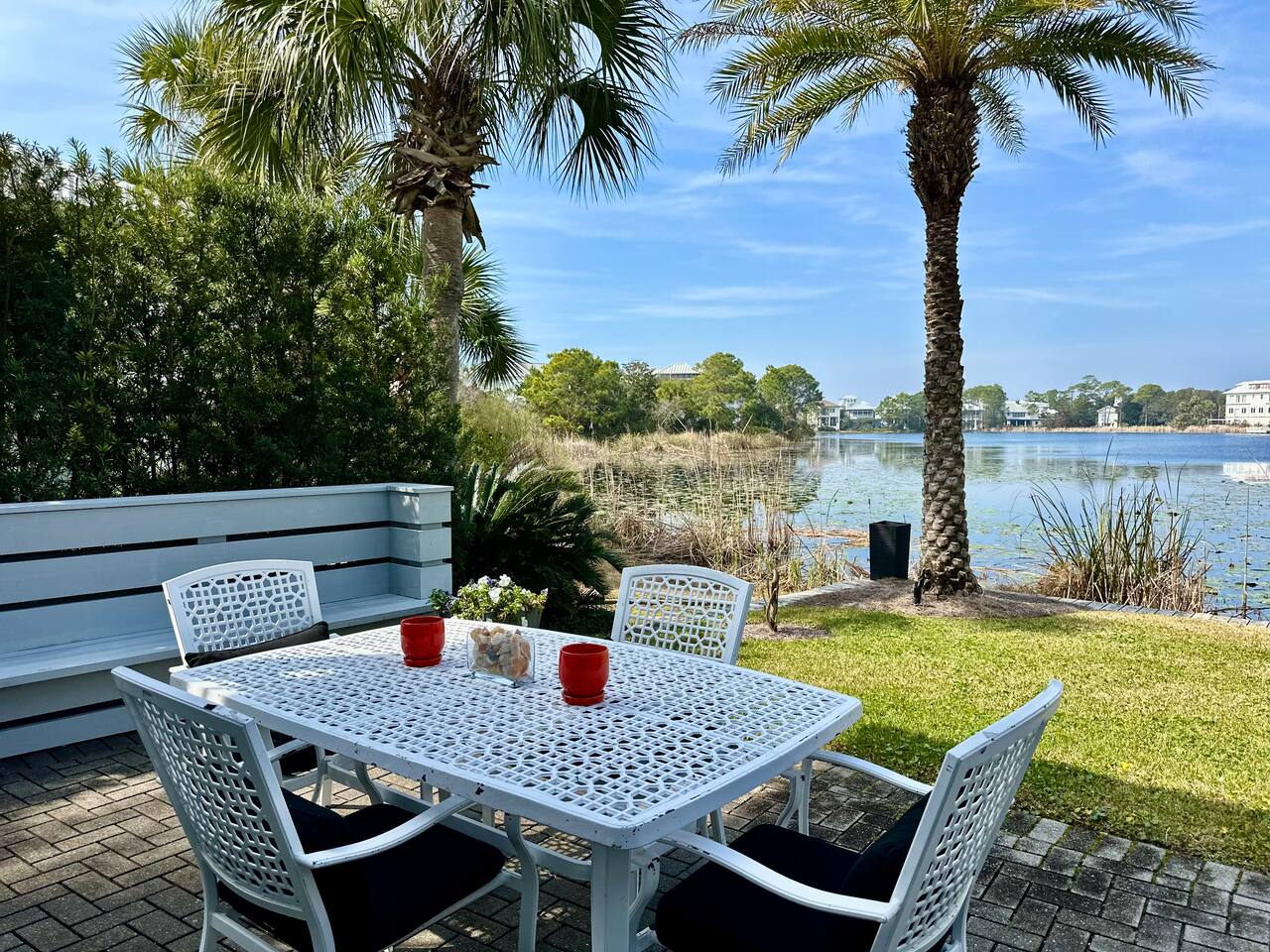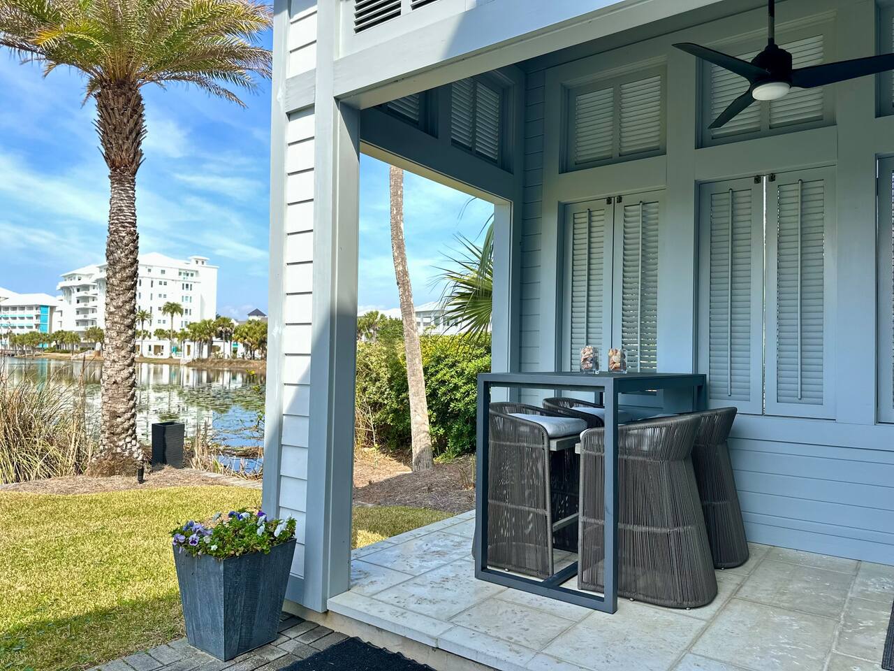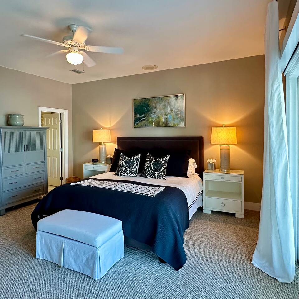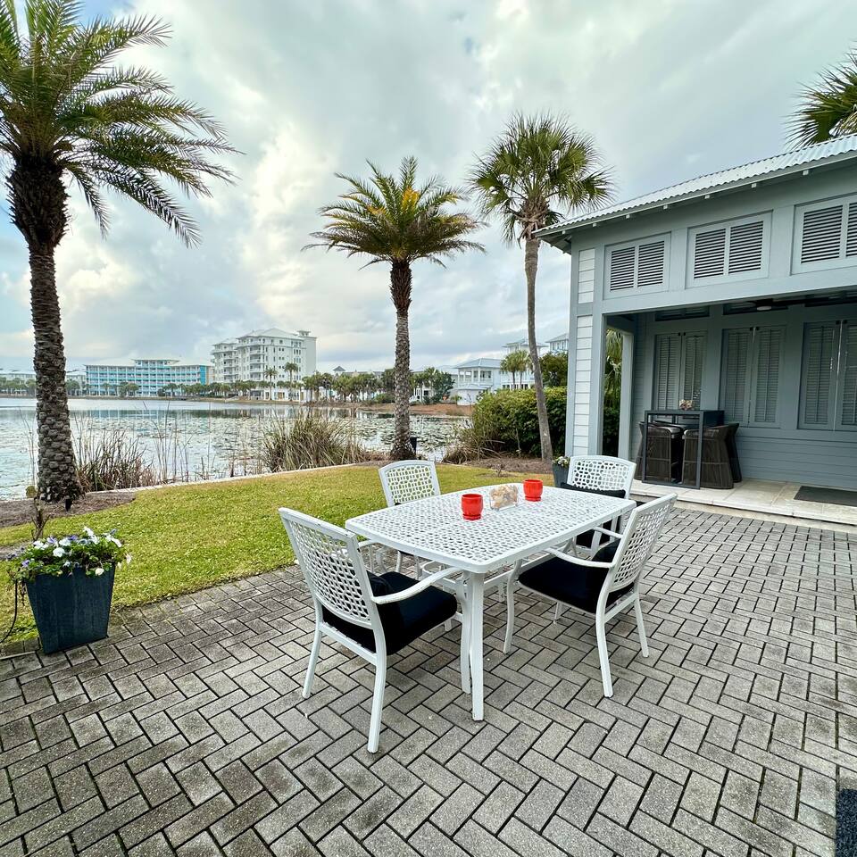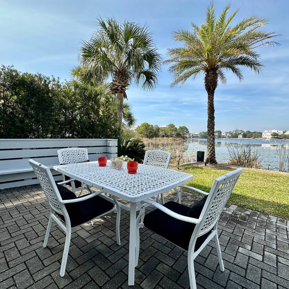 Wake to lake views and fall asleep to ocean breezes at Neither Tide Nor Time. This elegant beach home features 3 bedrooms, 4 bathrooms, a private office, covered patios, lakeside outdoor dining, a built-in grill, and a crow’s nest with stunning sea views. Just steps from the sand, enjoy Restoration Hardware linens, Molton Brown amenities, and a calm, thoughtfully designed space for a peaceful, luxurious escape. Centrally located for effortless coastal living.